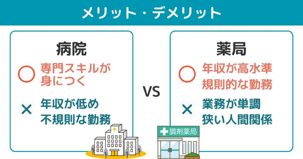 病院薬剤師 vs 薬局薬剤師|メリット・デメリット