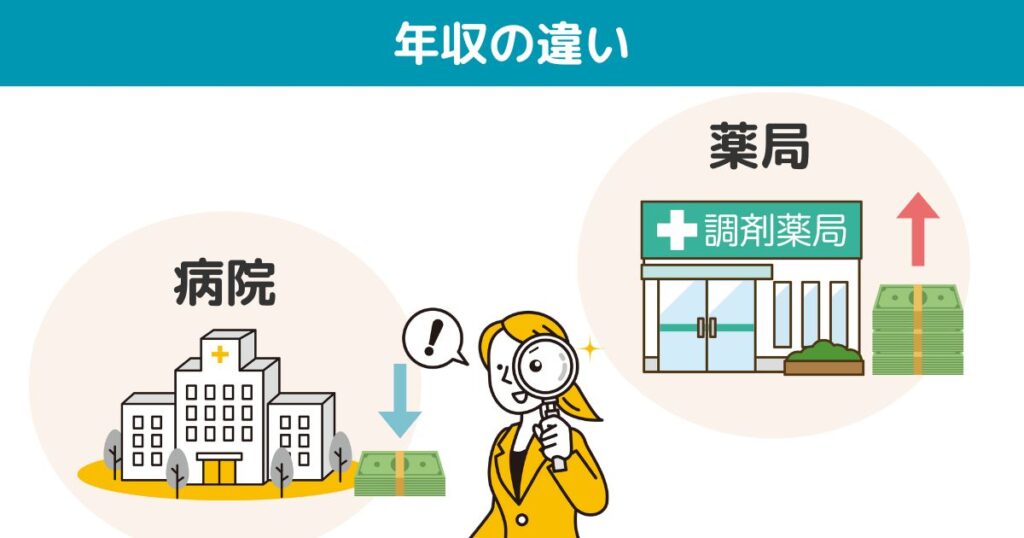 病院薬剤師と調剤薬局薬剤師を比較すると、一般的に調剤薬局薬剤師の方が年収が高い傾向にあります。