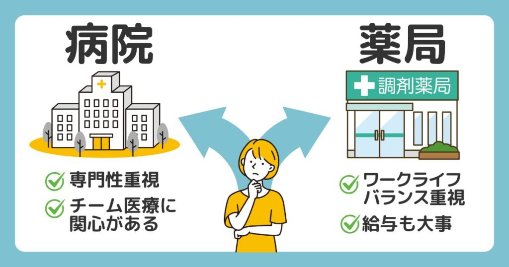 最終的には、「医療の専門性を極めたいか(病院)」、あるいは「収入と生活の安定を重視したいか(薬局)」というご自身の価値観によって最適な選択が分かれます。