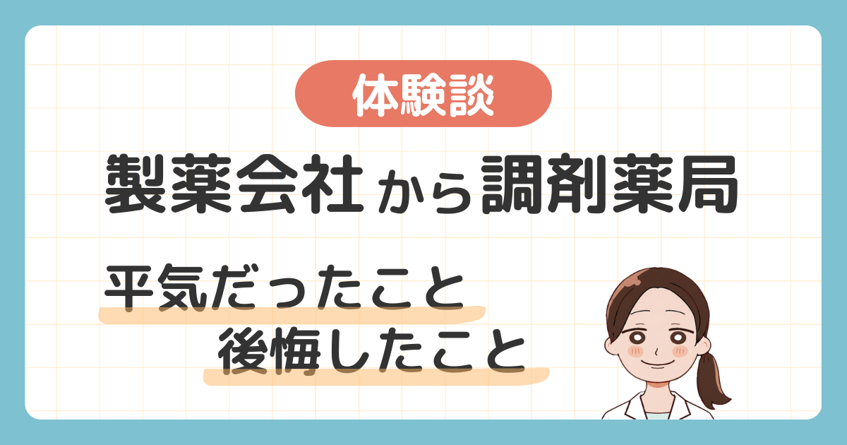 【失敗談あり】製薬会社から調剤薬局へ転職してわかった「平気だったこと」と「マジで後悔したこと」私のリアルな体験談